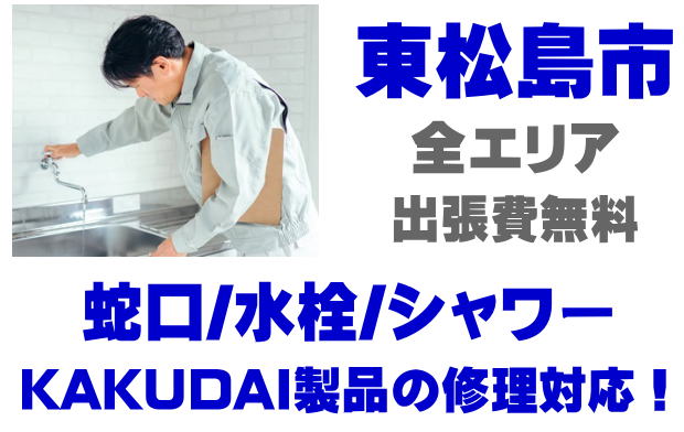 東松島市で水栓メーカーKAKUDAIの修理業者をお探しなら当社までお気軽にお問い合わせください。蛇口の水漏れ、シャワーの故障などカクダイ製に関するトラブルなら何でもご相談ください。