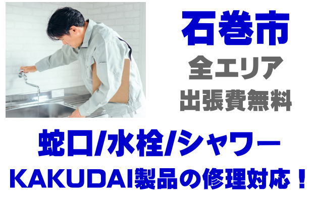 石巻市で水栓メーカーKAKUDAIの修理業者をお探しなら当社までお気軽にお問い合わせください。蛇口の水漏れ、シャワーの故障などカクダイ製に関するトラブルなら何でもご相談ください。