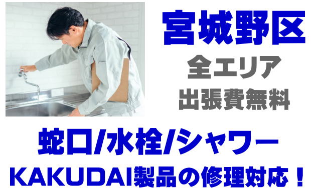 宮城野区で水栓メーカーKAKUDAIの修理業者をお探しなら当社までお気軽にお問い合わせください。蛇口の水漏れ、シャワーの故障などカクダイ製に関するトラブルなら何でもご相談ください。