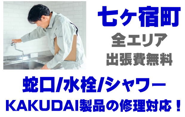 七ヶ宿町で水栓メーカーKAKUDAIの修理業者をお探しなら当社までお気軽にお問い合わせください。蛇口の水漏れ、シャワーの故障などカクダイ製に関するトラブルなら何でもご相談ください。