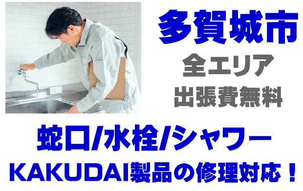 多賀城市で水栓メーカーKAKUDAIの修理業者をお探しなら当社までお気軽にお問い合わせください。蛇口の水漏れ、シャワーの故障などカクダイ製に関するトラブルなら何でもご相談ください。