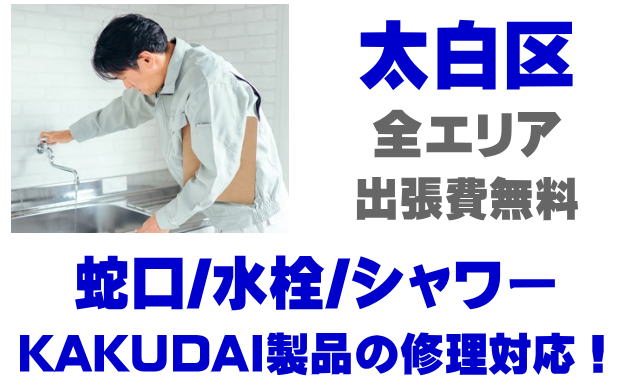 太白区で水栓メーカーKAKUDAIの修理業者をお探しなら当社までお気軽にお問い合わせください。蛇口の水漏れ、シャワーの故障などカクダイ製に関するトラブルなら何でもご相談ください。